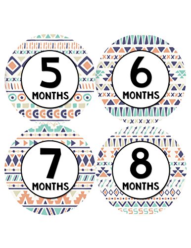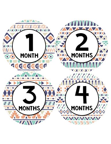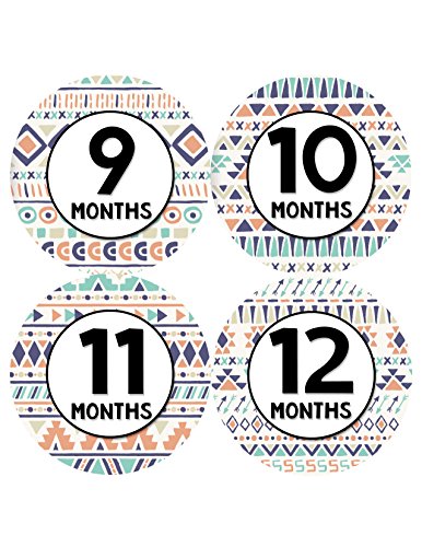 Monthly Baby Onesie Stickers by Months In Motion | 12 Month Milestone Sticker for Newborn Babies | Tribal (Style 1207)
