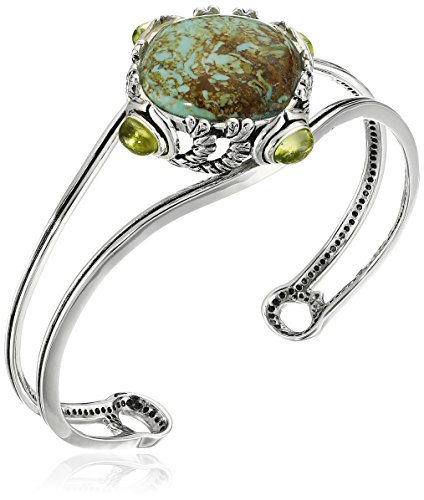 -. Title : Barse Sterling Silver and Patagonia Turquoise Peridot Accents Cuff Bracelet