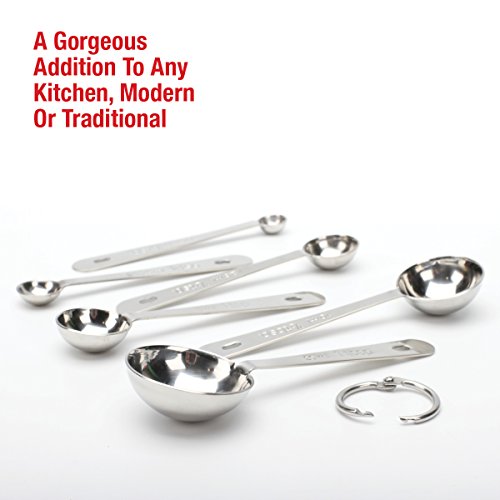 Measuring Spoons 18/8 Stainless Steel Round Spoon Design Set of 6 by 2LB Depot