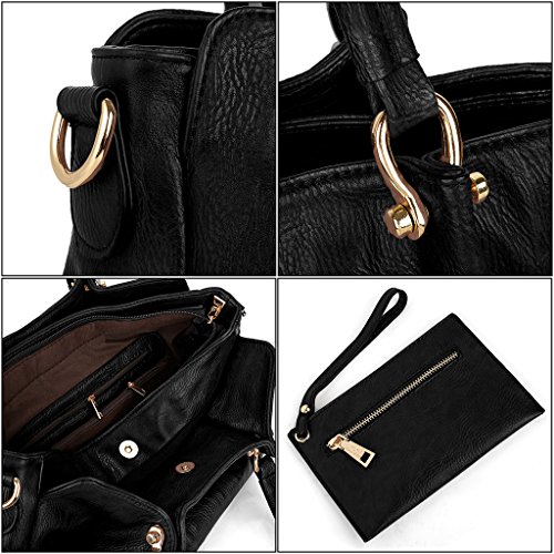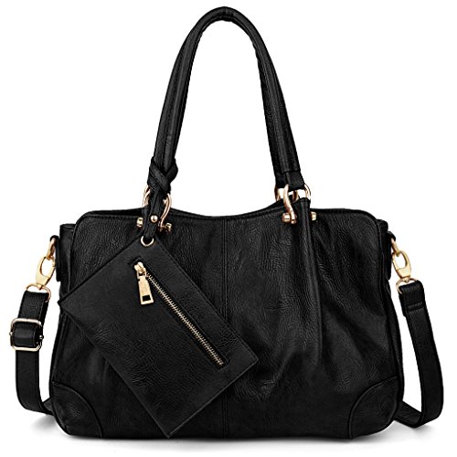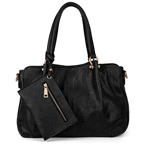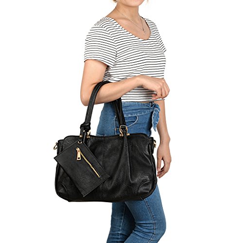 MULTI-FUCTIONAL - 2 pieces set handbag. 1 fashionable tote bag and 1 wristlet wallet. Handheld / Single Shoulder Carried by 2 Handles. Crossbody Carried by 1 detachable/adjustable shoulder strap.