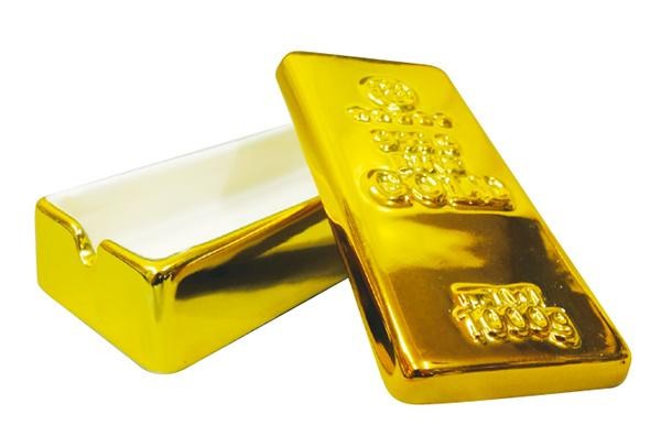 ピカピカで豪華な金の延べ棒灰皿は、喫煙時以外でトレイとして使用しても♪