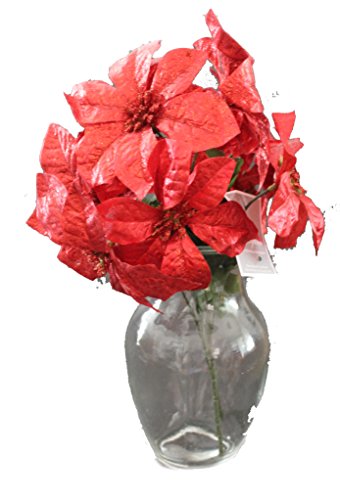 Set of 2 14" Sparkling Christmas Bush with Artificial 6" Poinsettia Flowers (Red)