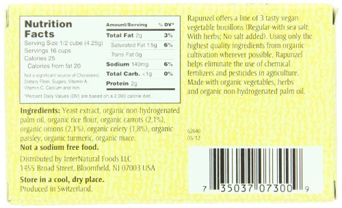 Rapunzel Pure Vegan Vegetable Bouillon, No Salt Added, 8 Cubes, 2.4-Ounce Packages (Pack of 6)