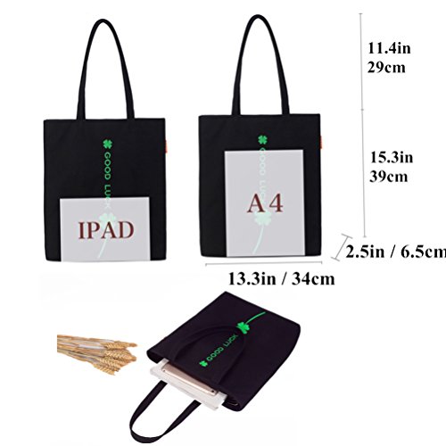 - Canvas material and hardware zipper with high quality,Stylish design, beautiful clover embroidery pattern and GOOD LUCK letters.