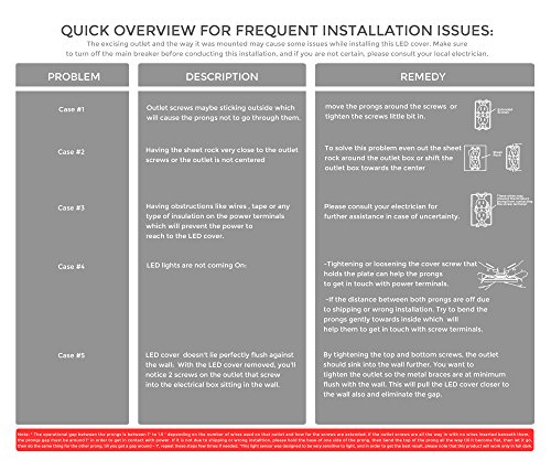 4. Cover is not flush with the wall: this issue can be solved by adjusting the outlet itself with its box. The thickness of the LED cover is different than the normal outlet cover because it has the LED board attached to it. So if the LED cover doesn't lie perfectly flush against the wall; with the LED cover removed, You'll notice 2 screws on the outlet that screw into the electrical box sitting on the wall, so by tightening the top and bottom screws, the outlet should sink into the wall further, you want to tighten the outlet so metal braces are at minimum flush with the wall which will pull the LED cover closer to the wall also and eliminate the gap.