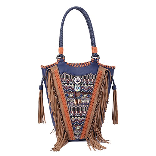 Shoulder Bag - Angedanlia Bohemian Handmade Bag Woman Tassel Handbag Tote 3934