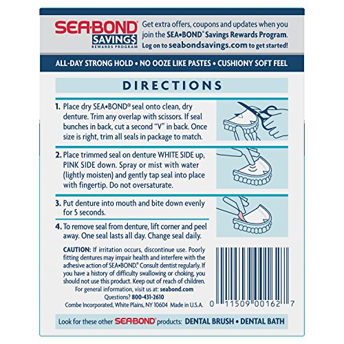 ReleaseDate : 2016-01-23 Studio : Sea Bond Publisher : Sea Bond Binding : Health and Beauty Product Description Get the extra confidence you’re looking for. Sea Bond Denture Adhesive works differently. The cushiony, soft seal gives you all day hold without the ooze and mess of denture pastes. And it’s zinc-free. Now you can wear your dentures comfortably all day and still feel like yourself. 0