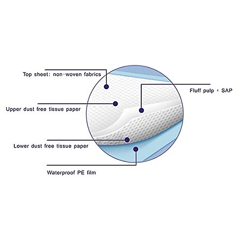 - AN EXTRA LAYER OF PROTECTION – Feel confident that your underlying surface will remain dry. Our three-layer designed underpad incorporates a comfort layer, an absorbency layer, and a waterproof protection layer. These pads offer the ultimate balance of comfort and protection.