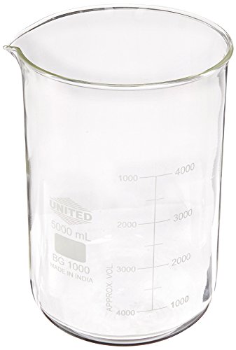 United Scientific BG1000-5000 Borosilicate Glass Low Form Beaker, 5000ml Capacity