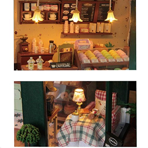Note : 1.The instruction is in English.Each steps has been clearly shown in the instruction with pictures to guide you how to assemble it. 2.The house kits are the furnitures and accessories which need to be DIY,Grinding, bonding, assembly, modelling to finish building your own house. 3. If you could fulfill the challenge,you will get more joy not only for a gift or a dollhouse. 6.Glue and batteries are not included in the package because they are not permitted to ship by Air Transportation.?So please prepare it by yourself. 0