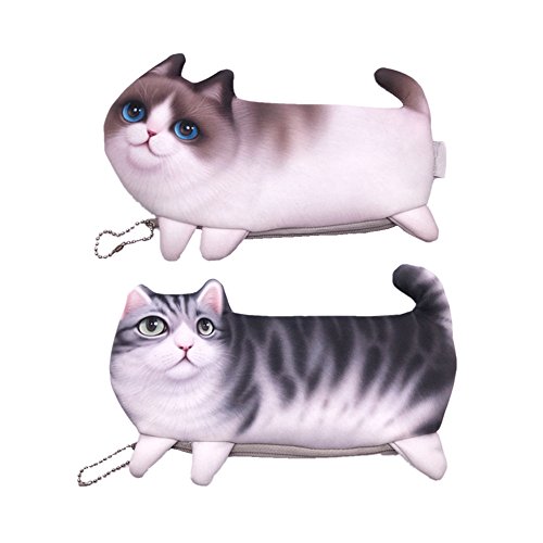 Funnylive Set of 2; Cute Cat Pencil Case Student Supplies Cosmetic Bag Coin Purse Cartoon Zipper Pen Pencil Case Storage Bag Pouch Stationery Gift
