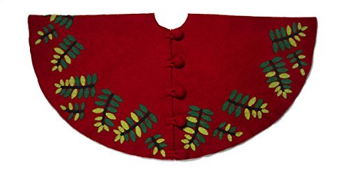 Arcadia Home TF43 Leaves Christmas Tree Skirt Hand Felted Wool , Red