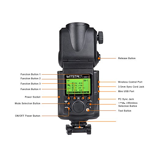 Fully support TTL autoflash, manual flash, flash exposure bracketing, flash exposure compensation, 1/8000s high speed sync, multi flash, manual focus assist, etc. Stable color temperature at 5600±200K over the entire power range.