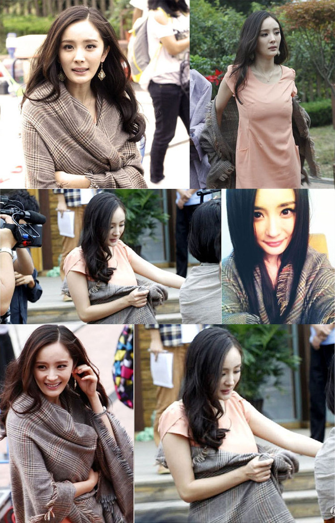 我对杨幂的着装一贯没多少感觉,但格纹的披肩完全改了我的印象