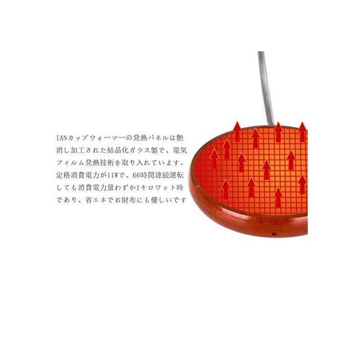 3,에너지 절약: IAN컵 워머(Warmer)의 발열 패널은 흥을 깸 가공 된 결정화 유리제에,전기 필름 발열 기술을 도입 있습니다. 정격소비전력이 11W에,66시간 연속 운전해도 소비전력량 불과 1킬로와트 시이고, 에너지 절약에 지갑으로도 친절합니다
