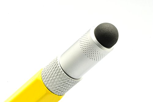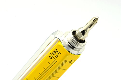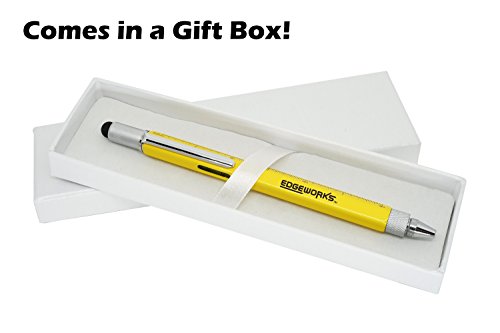 EdgeWorks Screwdriver Pen Tool is a Mini Multitool Pen with Stylus, Flat and Phillips Screwdriver Bit, Bubble Level, and inch cm Ruler, All in a Lightweight Durable Bright Yellow Aluminium Housing.