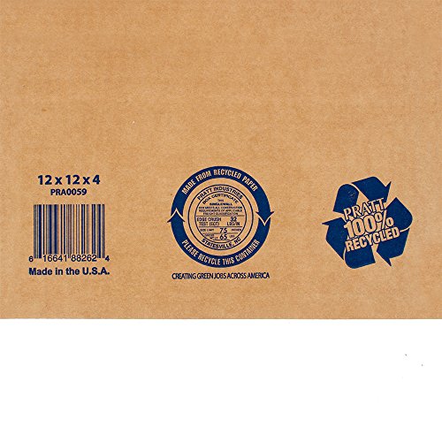 Pratt PRA0059 Recycled Corrugated Cardboard Single Wall Standard Flat Box with C Flute, 12" Length x 12" Width x 4" Height, (Pack of 25)