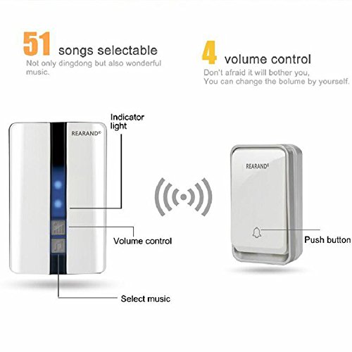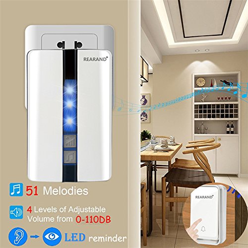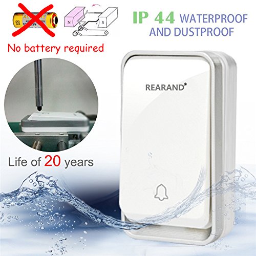 REARAND Wireless Doorbell Chime Waterproof Door Bell Kit,Operating at Over 450 Feet Range with Over 50 Chimes, No Batteries Required for Transmitter &Receiver