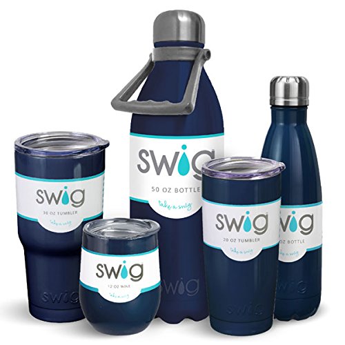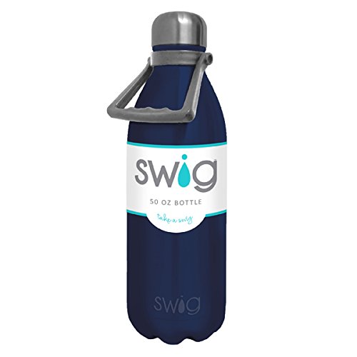SWiG 50oz travel bottle-navy Blue - why should you choose SWiG? superior temperature retention (hot/cold) - swig's double-wall Vacuum insulated tumblers will keep your drinks seriously cold (or hot!). swigs are engineered to maintain the temperature of your beverage for the maximum time possible with current technology. Vacuum insulation - SWiG premium drinkware uses double-wall vacuum-sealed insulation technology, which means the space between the stainless steel walls is void of matter. With no medium for heat to transfer, your Drink's temperature will not be impacted by the outside temperature. 304 grade - 18/8 stainless steel - crafted from 304 grade 18/8 stainless steel. All drinkware is BPA free, FDA approved, highly resistant to rust, absorbing odor, retaining taste and bacteria, and easy to clean by hand. Clear lids and stainless steel caps - the 9oz wine, and 20oz and 30oz tumblers all have a clear push-seal lid while the 17oz and 50oz bottles have a stainless steel twist-off cap. Both closures feature a rubber seal gasket for better temperature control and are dishwasher safe. Copper coated inner walls - swig's double-wall stainless steel inner walls are copper plated, which provides an additional barrier against heat entering or exiting the vessel. Sweat free - swig's double-wall Vacuum insulation prevents condensation from ever forming on the exterior. Hot liquids will not impact the exterior, either. This means SWiG will always be comfortable to hold and never make a watery mess in your hand or on your table.Feature