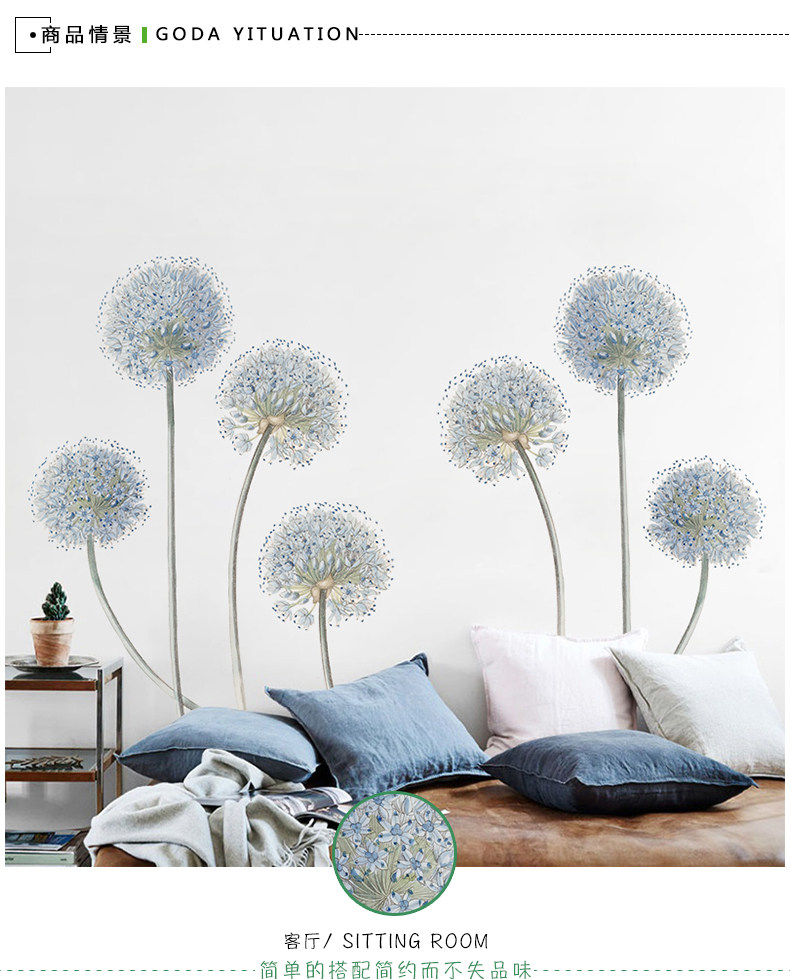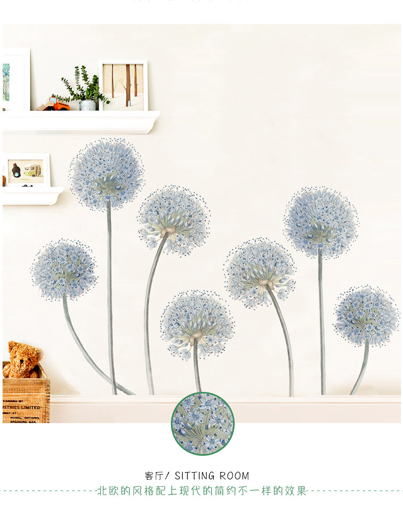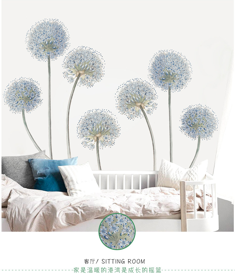 北欧简约蒲公英墙贴壁纸墙纸自粘贴画宿舍卧室温馨背景墙装饰贴纸