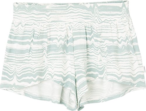 The RVCA Worthy are jersey-knit pull on shorts with a smocked waistband, a scalloped hemline at the front leg openings, and a RVCA flag label at the wearer's left side seam.