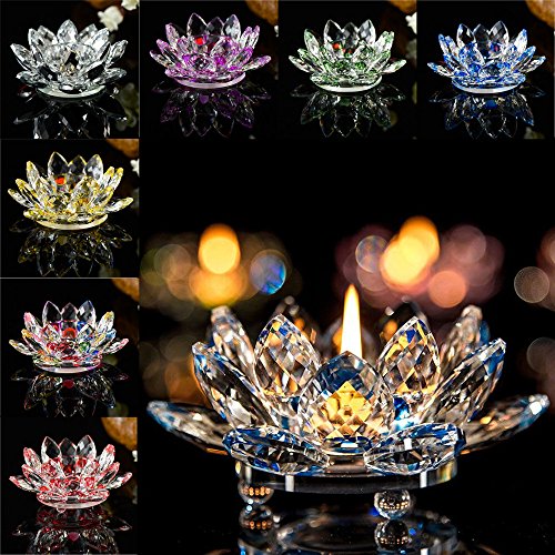 Happy Shopping Start From Here --- Efaster Description: ♪ ♪The lotus flower represents peace, purity and enlightenment. ♪The Lotus is a universal symbol of purity and enlightenment. Regarded as the good fortune flower by many Feng Shui masters, the lotus is said to turn bad luck to good luck and heighten your sense of joy and peace. ♪Crystal Lotus Flowers are excellent conductors of energy. ♪Place this crystal near a window in your home to catch the direct sunlight shining along any wall. The crystal will break up the sunlight and create beautiful Decor in your home, bathing it in precious yang energy and creating harmony and a feeling of optimism. ♪Add a warm light and tasteful elegance to any home or event decor with our lotus candle holders. ♪Adorn your table, decorate your room, create a warm atmosphere. ♪Give you a different festival. ♪Three layers of lotus petal design, the whole lotus candleholder is elegant and sturdy, not lighting the candle is also a wonderful decoration. ♪Diameter: 80mm ♪Package include: 1x Lotus Crystal 0