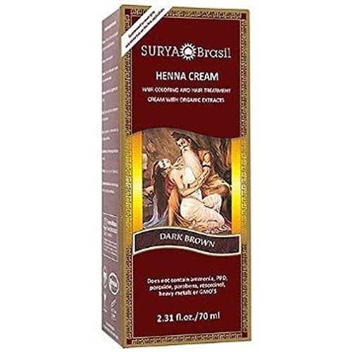 Surya Henna, Henna Cream, High-Performance Healthy Hair Color for Grey Coverage, Dark Brown, 2.37 fl oz (70 ml)