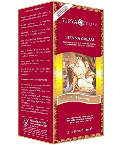 Surya Henna Brasil Cream Light Blonde - Hypoallergenic Organic Hair Coloring - 2.3 fl oz