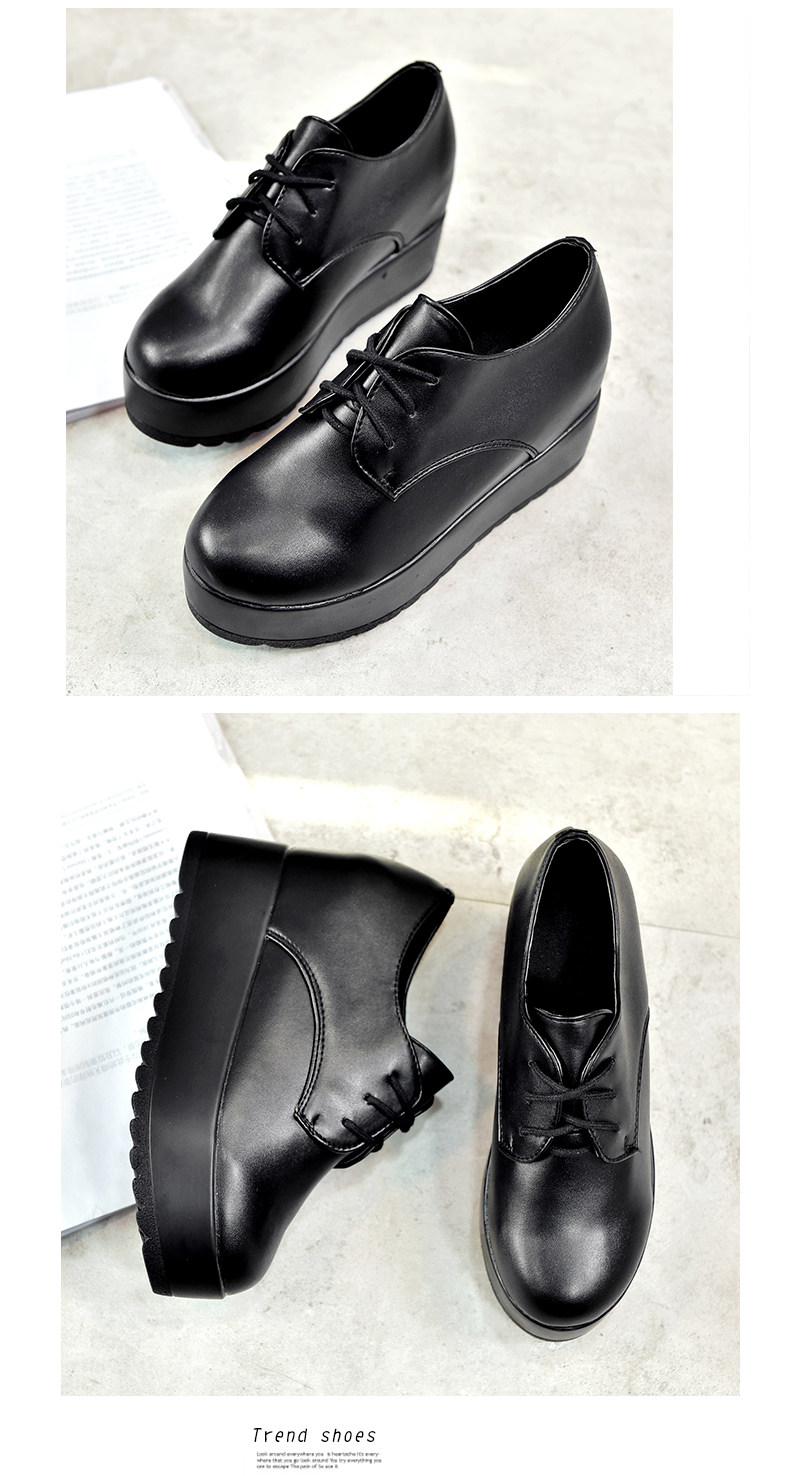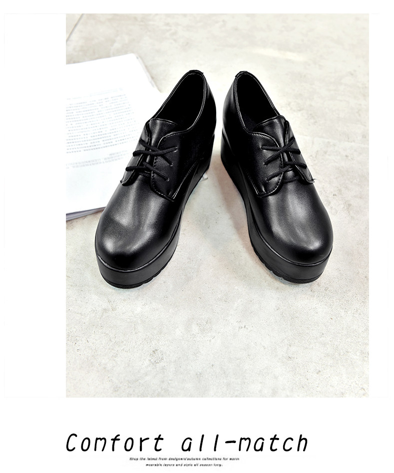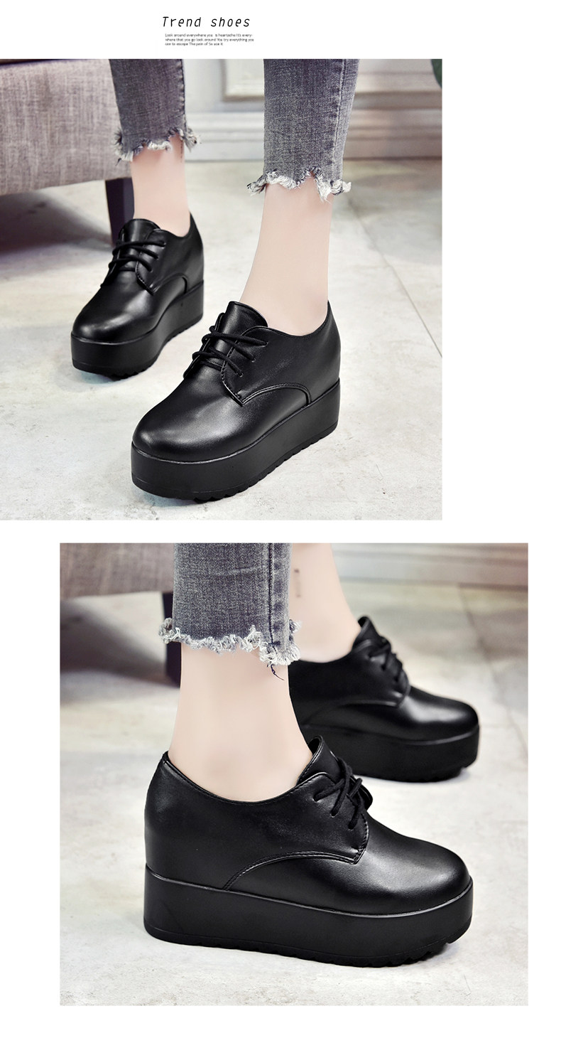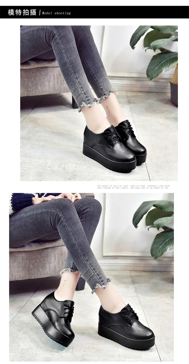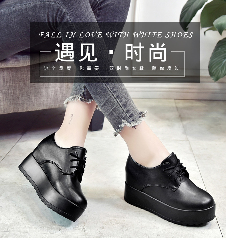 英伦风软妹小皮鞋女秋季新款松糕厚底休闲鞋增高系带女鞋子