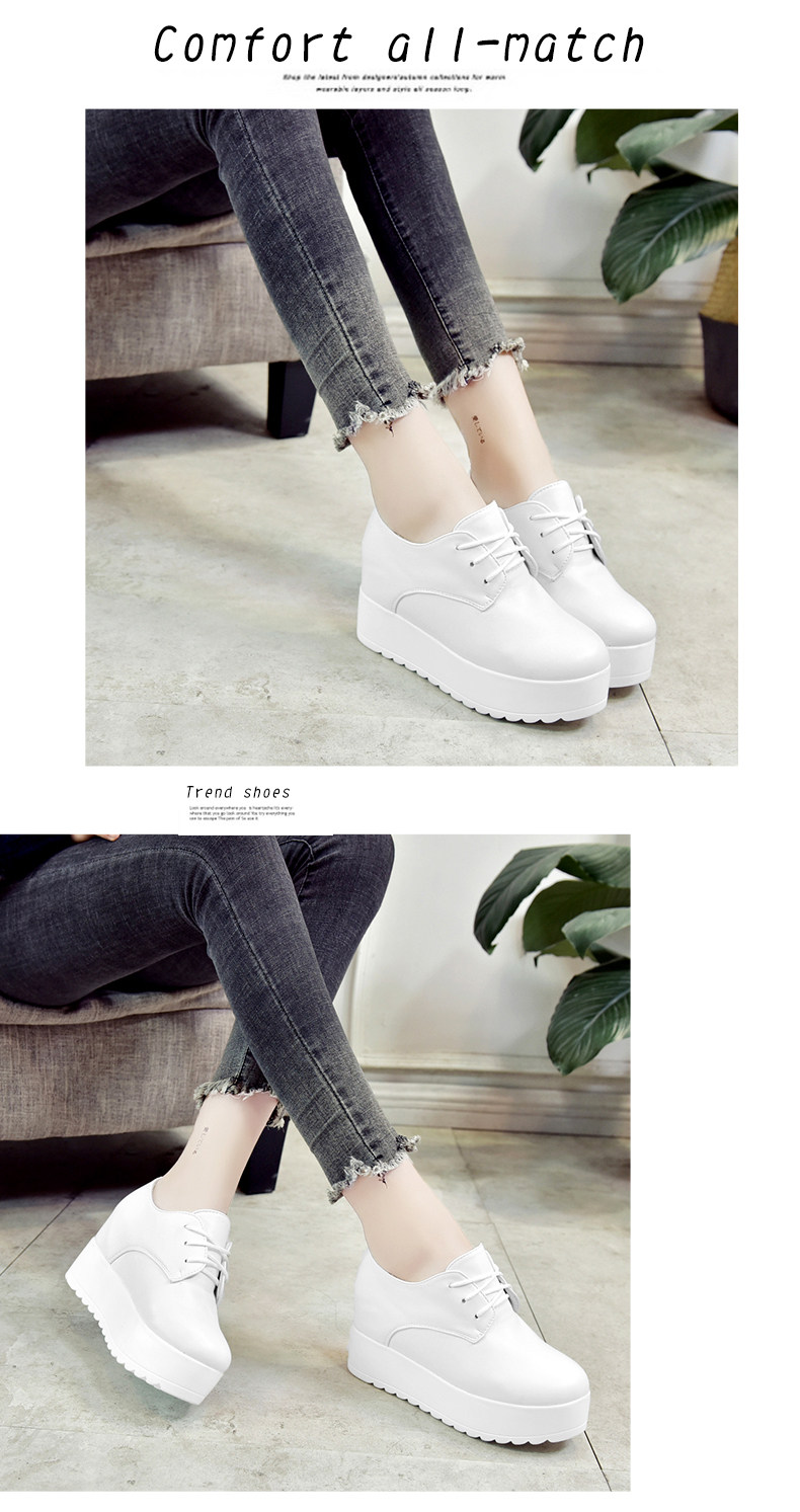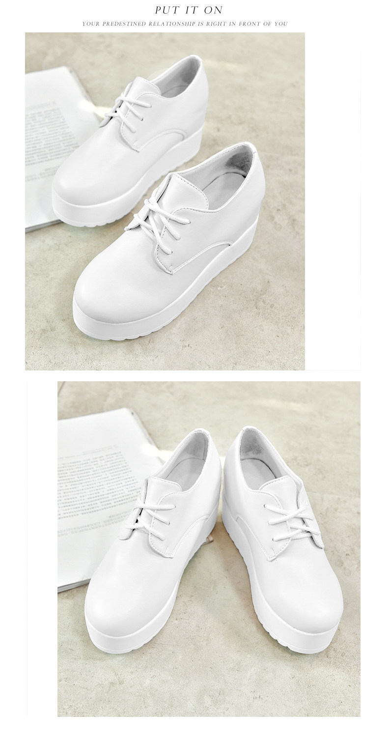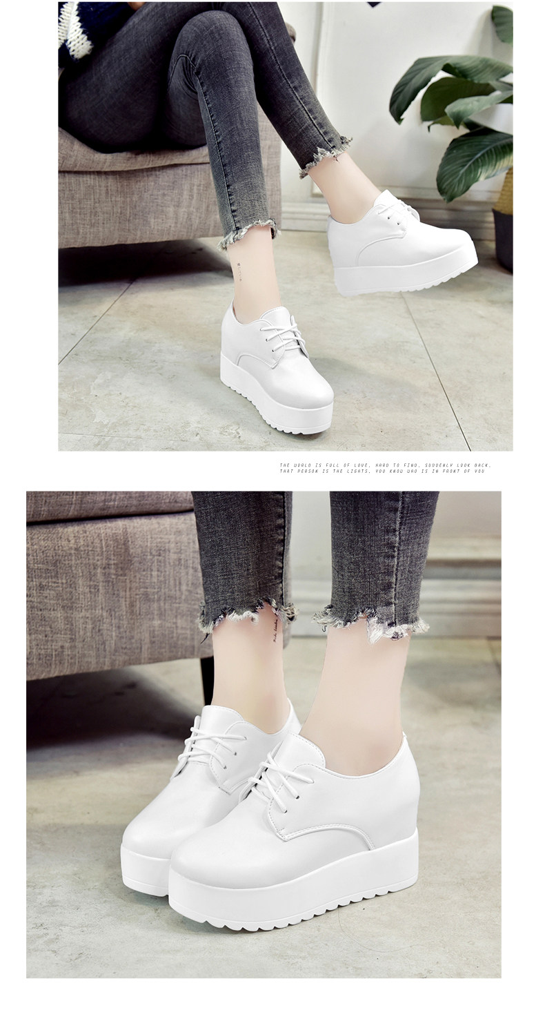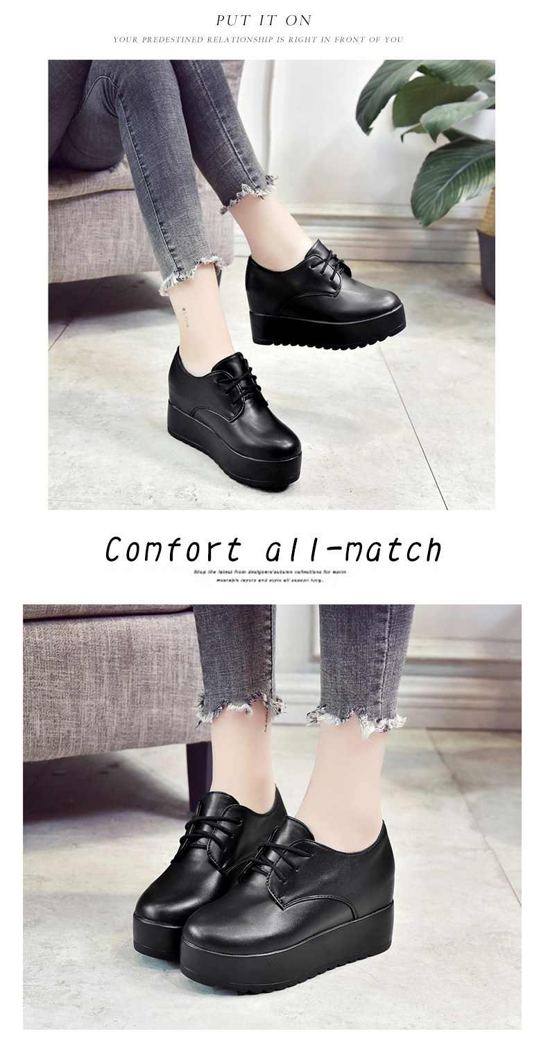 英伦风软妹小皮鞋女秋季新款松糕厚底休闲鞋增高系带女鞋子