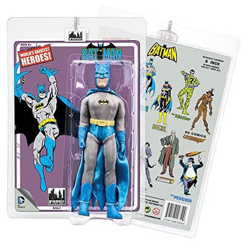 -. Binding : Toy -. Brand : Figures Toy Company -. EAN : 0728028298512 -. Feature : 8 Inch Retro Mego Style Action Figure / Includes an authentic cloth outfit / Comes in resealable plastic clamshell packaging that can be opened and closed without damaging anything. / Officially licensed DC Comics product -. IsAdultProduct : 0 -. Label : Figures Toy Company -. Manufacturer : Figures Toy Company -. MPN : BTVMO8BAT -. PackageQuantity : 1 -. PartNumber : BTVMO8BAT -. ProductGroup : Toy -. ProductTypeName : TOYS_AND_GAMES -. Publisher : Figures Toy Company -. Studio : Figures Toy Company -. Title : Batman Retro 8 Inch Action Figures Series 4: Batman -. UPC : 728028298512