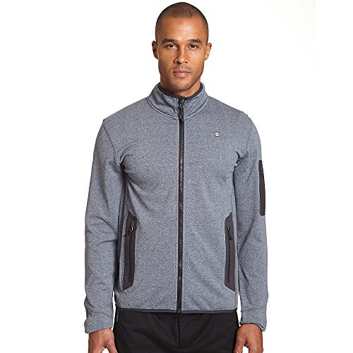 Studio : Champion Mens Outerwear Publisher : Champion Mens Outerwear Binding : Apparel Product Description Champions men's 4 way stretch sport knit jacket: bonded stretch shell fabric has a mini grid breathable interior lining, welded exterior pockets, sleeve pocket, zip front entry and interior media portal with/smart pocket. 0