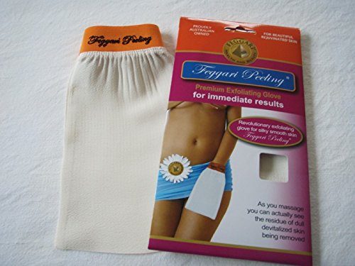 -. Feature : The Feggari Peeling® Glove is made of an all natural plant cellulose fiber / Promotes the skin's natural EXFOLIATING process and Improves the flow of OXYGEN to the skin / Helps eliminate impurities such as clogged pores, ACNE, and skin blemishes / Replaces chemical peeling process in a totally natural way / Enhances the effectiveness of the active P.R.Inciples in ANTI-CELLULITE, MOISTURIZING, ANTI-WRINKLE, AND ANTI-STRETCH MARK creams