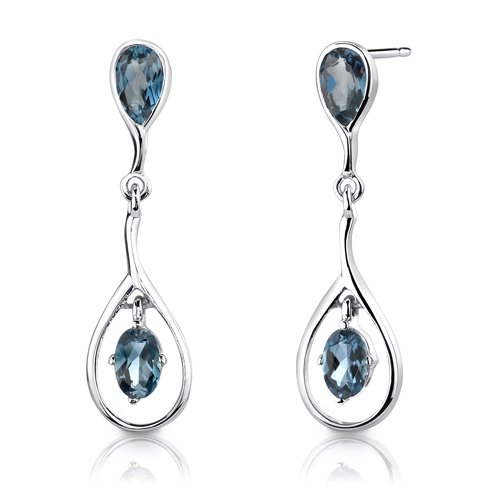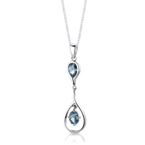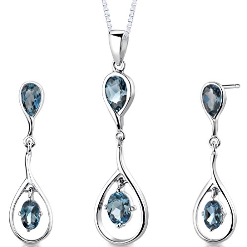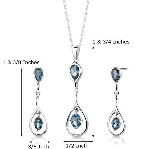 -. Title : London Blue Topaz Pendant Earrings Necklace Sterling Silver Rhodium Nickel Finish Pear and Oval Shape