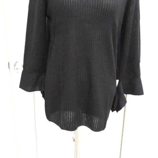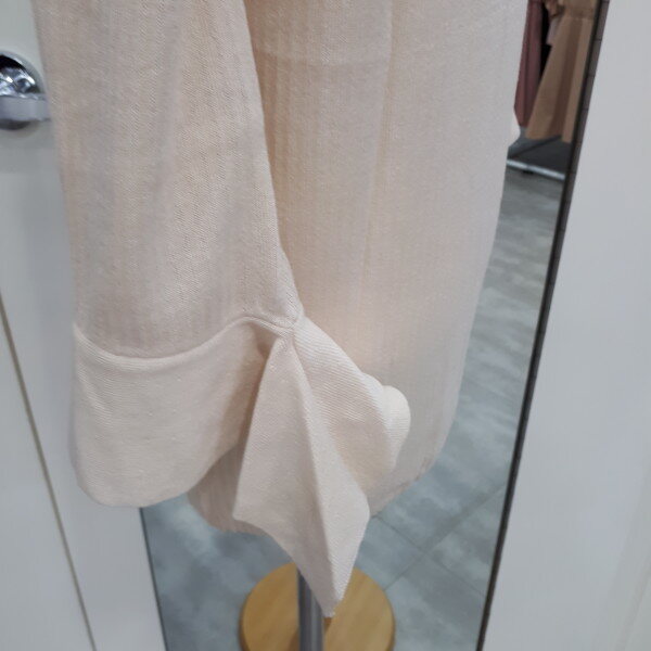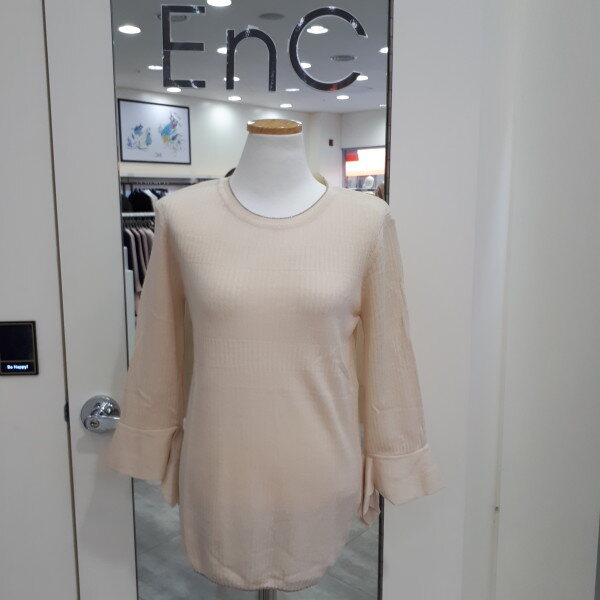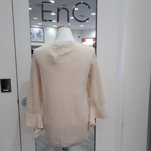 소매부분이 여성스럽고 우아한 스타일입니다소재도 부드럽고 목선에 포인트를주어 세련되게 입을수있는 아이템입니다