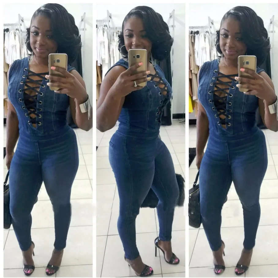 Item Bandage Bodycon Bodysuit:Denim Jumpsuits