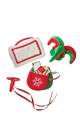 - Features a 4-piece set of a red and green saddle bag, white faux sheepskin blanket, jester hat, and bridle ribbon with reigns