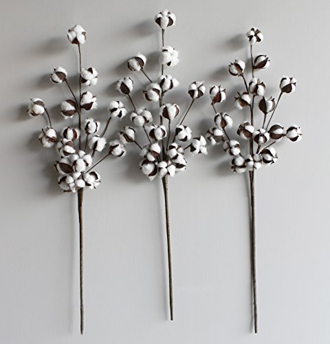 Set of 3, 30" tall Cotton Boll Stems. Bring a soft touch of nature into any room! Simply display these stems in a large vase for a lovely accent any time of the year!