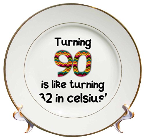 3dRose cp_184969_1 Turning 90 is Like Turning 32 in Celsius Humorous 90th Birthday Gift Porcelain Plate, 8"