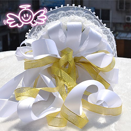 - Title : Hestian 18pcs Rose with Rhinestone,pearls Chains Stain Ribbon Handle Bridal Wedding Bouquet Silk Rose Hand Tie (white)