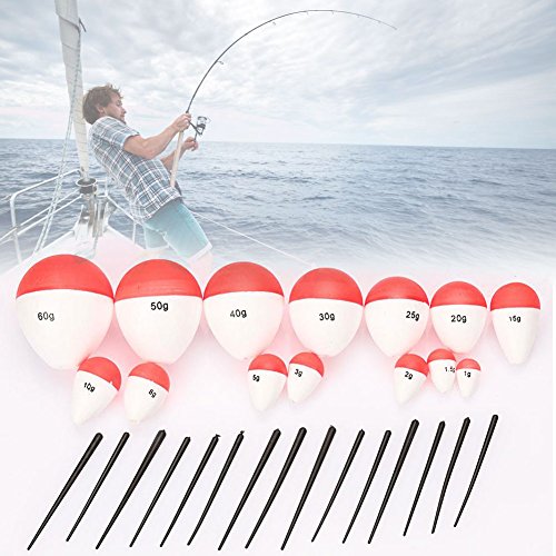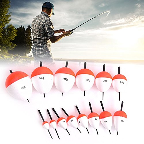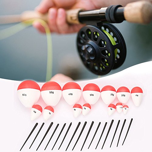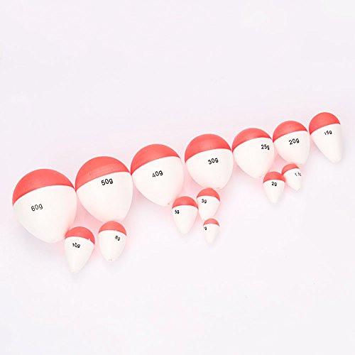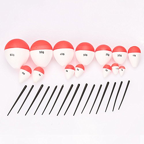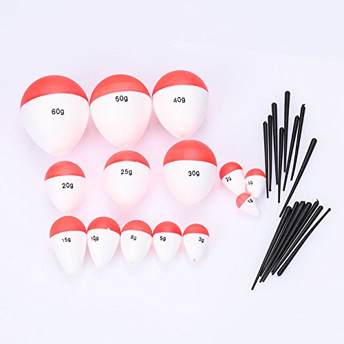 -. Feature : Category: Fishing bobbers / Color: White+Red / Material: EPS / Push button fasteners. Heavy-duty strong sP.R.Ings that ensure strong line grip. Don't get caught without a spare / Package including:14 X Fishing bobbers 1 X Stick
