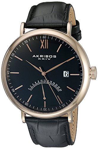 -. Title : [アクリボス XXIV] Akribos XXIV 腕時計 Men's Retrograde Rose Tone Stainless Steel and Black Leather Strap Watch クォーツ AK845RGBK メンズ 【並行輸入品】