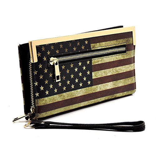 -. Title : American Flag Wallet with Wrislet, Around Zip, Vintage Style By Fashion Glad