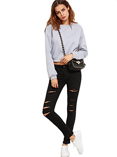 -. Title : SweatyRocks Women's Casual Cotton Ripped Skinny Jeans Distressed Denim Pants