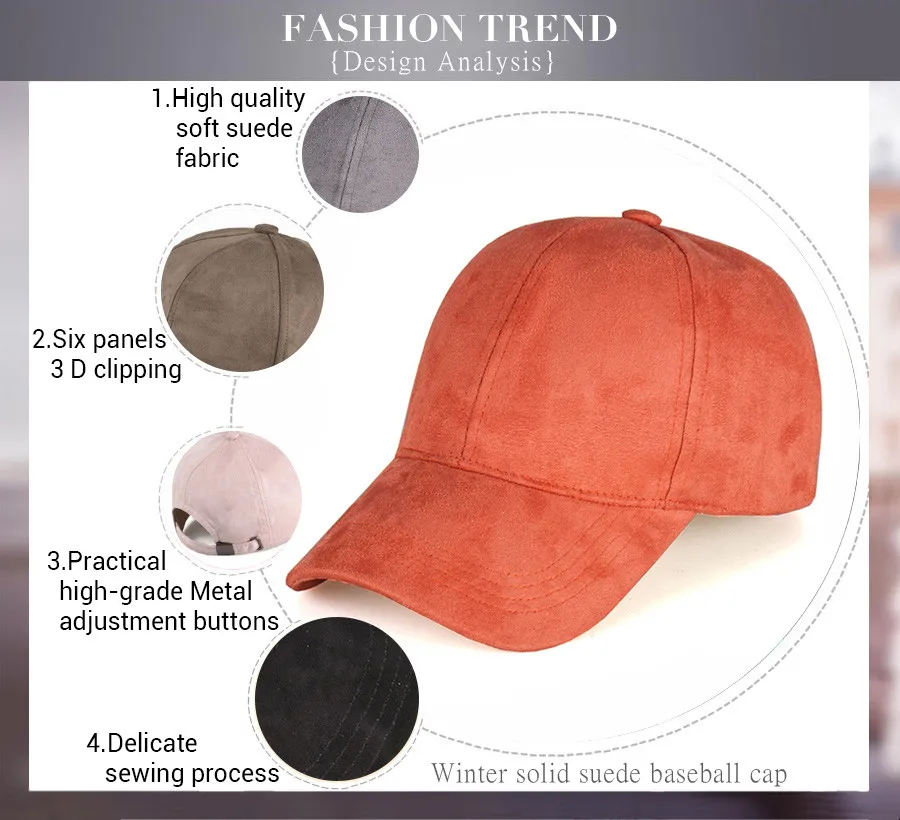 Winter Baseball Cap Women Material:Soft high quality suede meterial