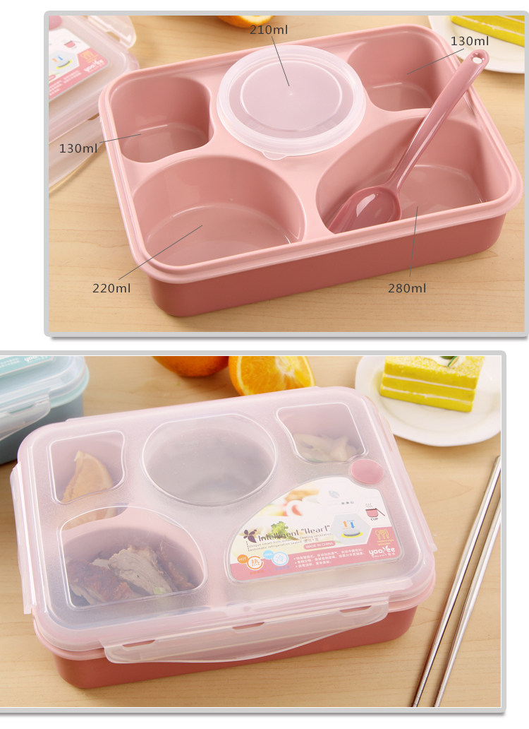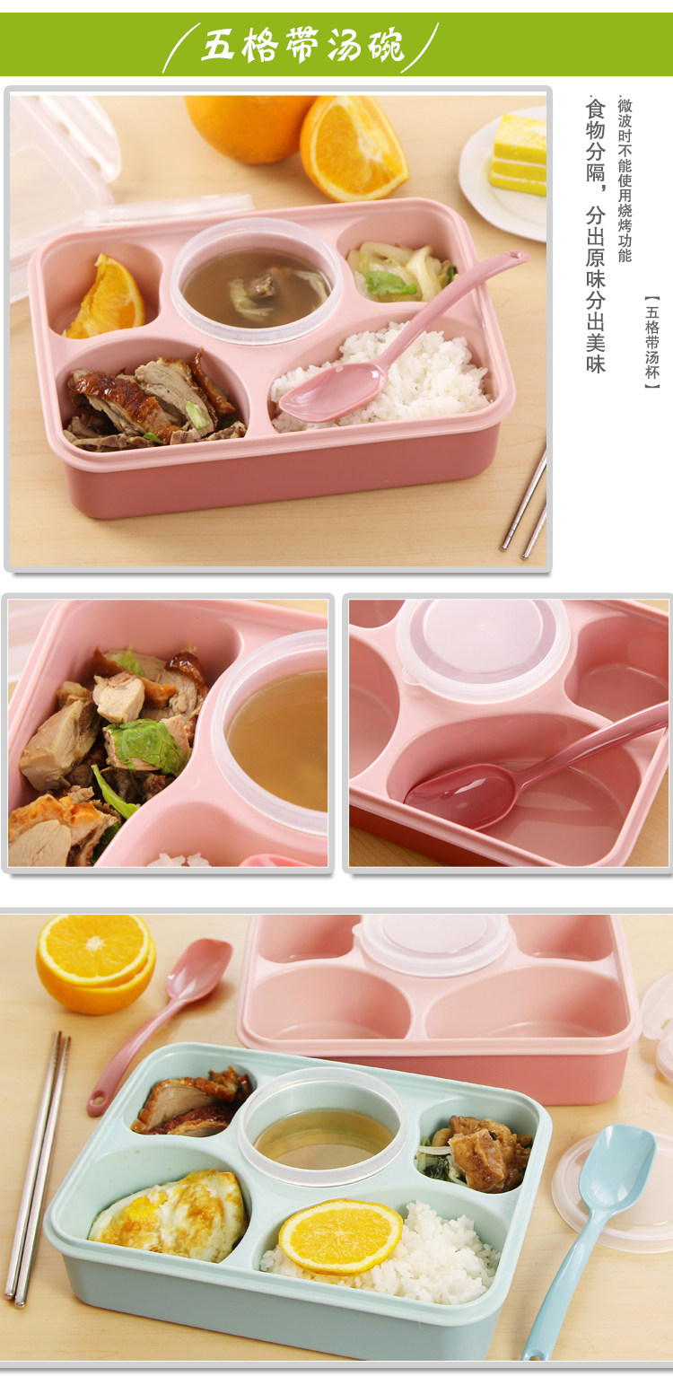?品????名:五加一微波饭盒 ?材????料:食品级PP塑料 环保无毒无气味?通过环保无毒测试