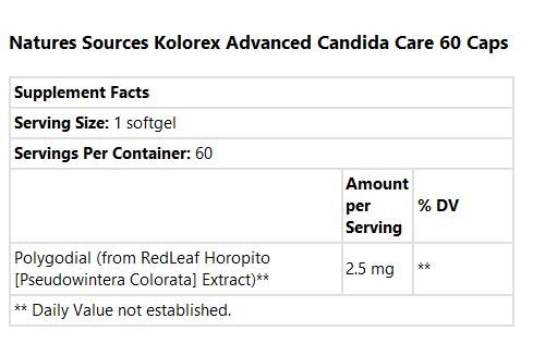 -. Binding : Health and Beauty -. Brand : Kolorex -. Feature : Processed foods, beverages and stress sometimes affect the microbial balance in our intestines / Nature's Sources -. Label : Kolorex -. LegalDisclaimer : Actual product packaging and materials may contain more and different information than what is shown on our website. We recommend that you do not rely solely on the information presented and that you always read labels, warnings, and directions before using or consuming a product. -. Manufacturer : Kolorex -. MPN : F1SE:0912865#SH#AdvancedCandida60CT-P -. PartNumber : F1SE:0912865#SH#AdvancedCandida60CT-P -. ProductGroup : Health and Beauty -. ProductTypeName : HEALTH_PERSONAL_CARE -. Publisher : Kolorex -. Studio : Kolorex -. Title : Kolorex Advanced Candida Care 775 mg, 60 Softgels.