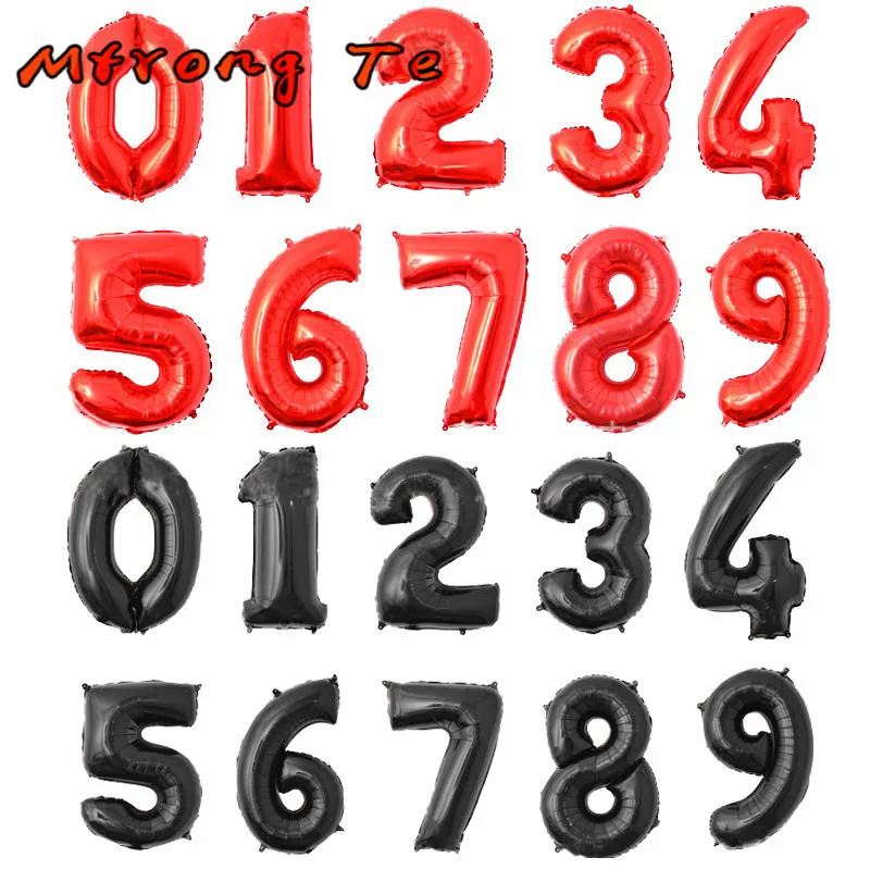 Style:1 pc 32inch Red Black Number Foil Balloons