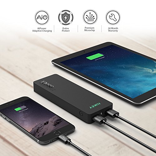 -. Binding : Electronics -. Brand : Aukey -. Color : Black -. EAN : 0701979497241 -. Feature : 12000mah Power Bank - Fully charge your iPhone 6s 4.5 times or a Galaxy S6 3 times, or an iPad mini 1.2 times / Dual USB ports, combined 3.4A output - Simultaneously charge 2 iPads at max speed with more current / AiPower - Tuned to adaptively provide the safest maximum recharge rate for all your USB powered devices / Built-in safeguards protect your devices against excessive current, overheating, and overcharging / Package Contents: AUKEY 12000mAh Power Bank, Micro USB Cable, User Manual, 24 Month Warranty -. IsAutographed : 0 -. IsMemorabilia : 0 -. Label : Aukey -. Manufacturer : Aukey -. Model : PB-N28 -. MPN : PB-N28 -. PackageQuantity : 1 -. PartNumber : PB-N28 -. ProductGroup : Wireless -. ProductTypeName : WIRELESS_ACCESSORY -. Publisher : Aukey -. Studio : Aukey -. Title : Aukey 12000mAh Portable Power Bank Charger External Battery Pack with AIPower Tech for Apple, iPhone 6S,iPhone 6S Plus, Android and other USB Powered Device -. UPC : 608225621163