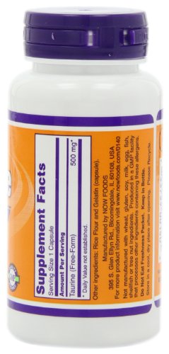NOW Taurine 500mg, 100 Capsules (Pack of 3)